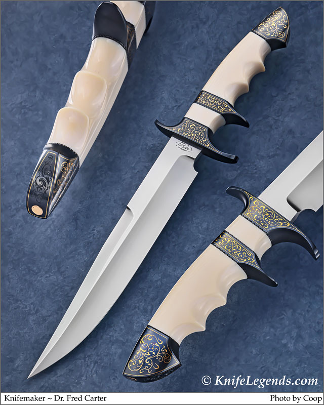 Comments: As you probably know, PHD Botanist Dr. Fred Carter was one of the finest makers of Art Daggers in the world. He also produced stunning art folders, and was one of 25 members of the elite Art Knife Invitational. He is featured in a full chapter in David Darom’s book on the worlds finest folding knife makers. In other words Fred Carter is one of the elite knife makers of all time.