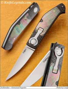 Emmanuel Esposito is one of artistic brilliance and mastery in knife making. Revered for his intricate designs and meticulous craftsmanship, Esposito has left an indelible mark on the industry. His knives, adorned with exquisite engravings and flawless finishes, are treasured by collectors worldwide. Esposito’s legacy extends beyond his creations, inspiring future generations of artisans to push the boundaries of creativity and craftsmanship, ensuring his enduring influence in the world of knives.